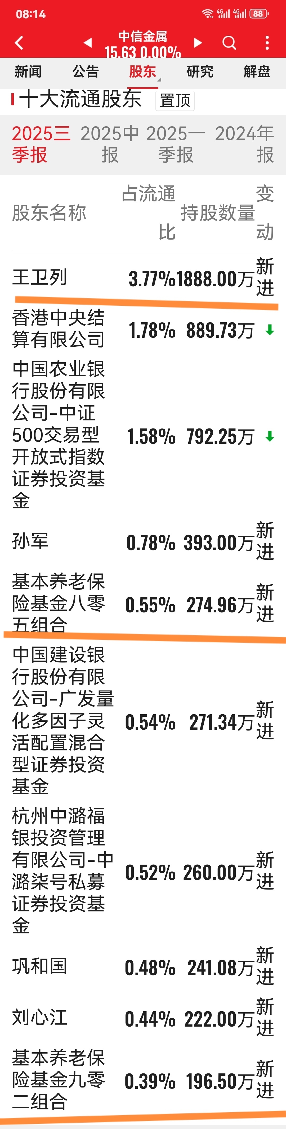 牛散王卫列新进1888万股,寓意“要发发发”。社保805和902组合新进。股东人