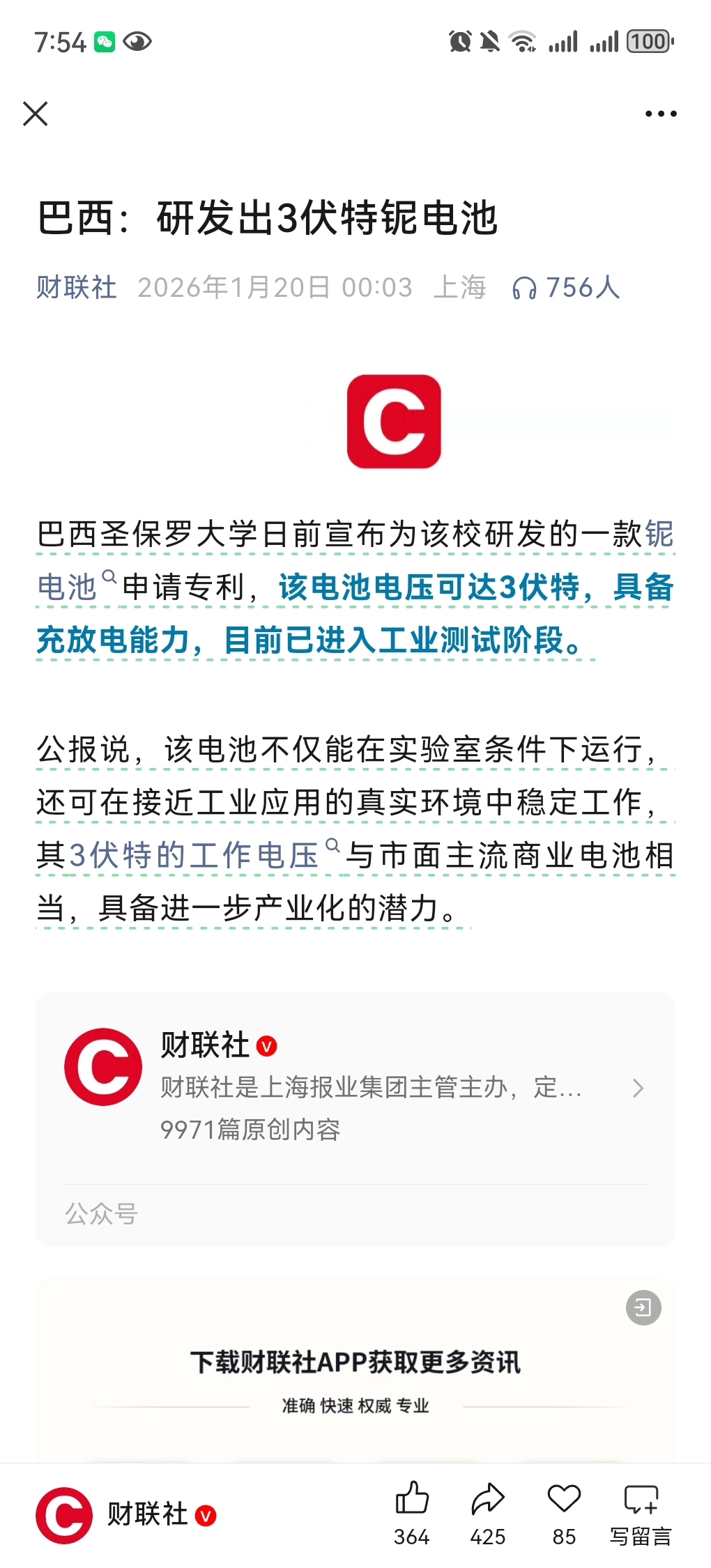 巴西圣保罗大学日前宣布为该校研发的一款铌电池申请专利,该电池电压可达3伏特,具备