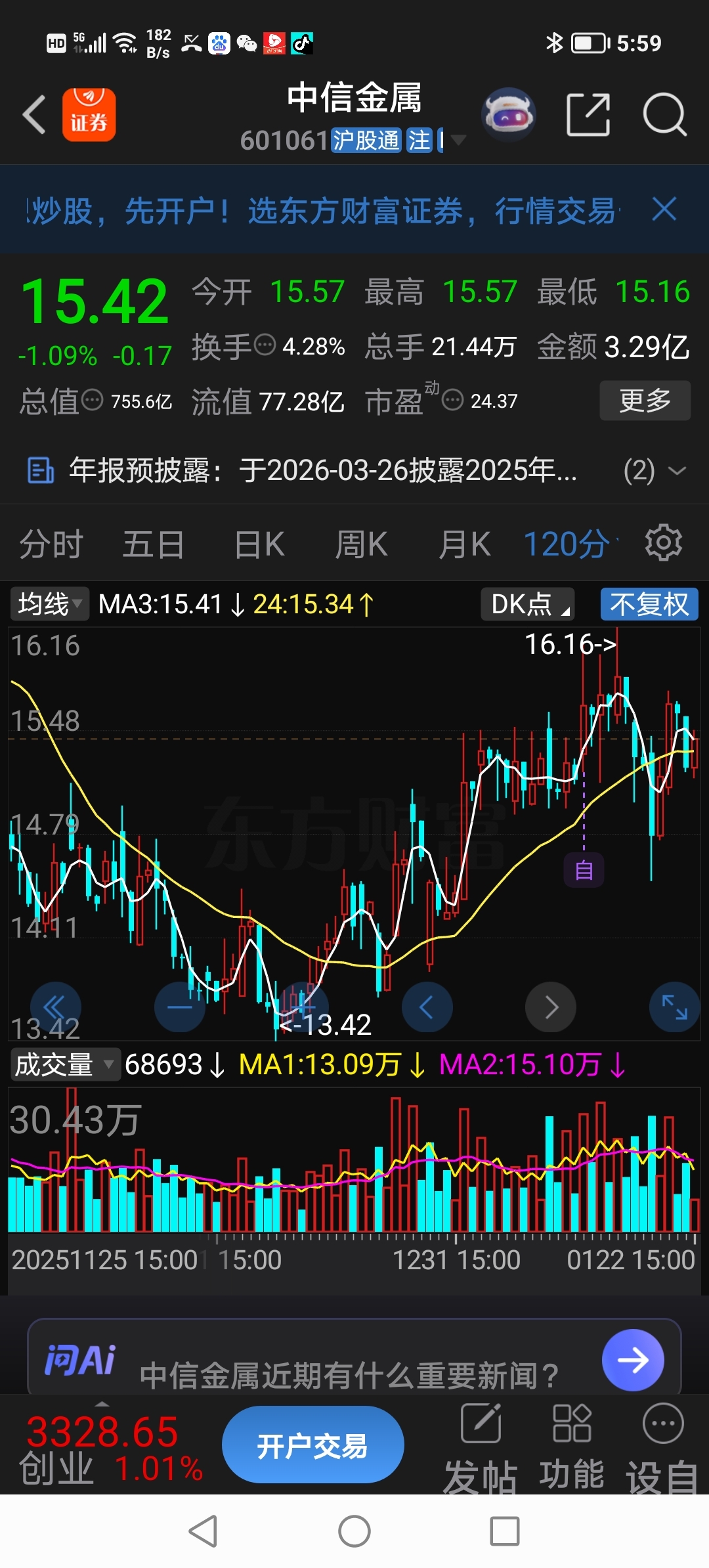 收盘点评:中信金属还运行在黄线趋势向上之中!做局主力把股票折腾得叽叽歪歪的、真恶