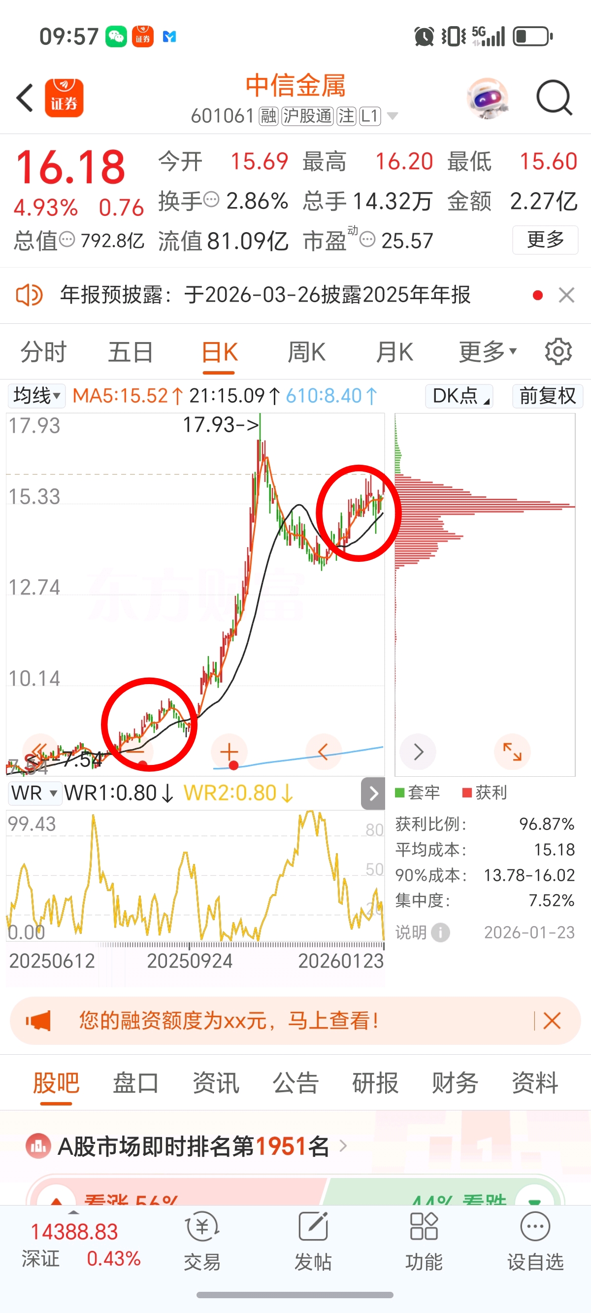 $中信金属(SH601061)$ 复刻去年9月的走势,主升浪的前夕,抓住机会