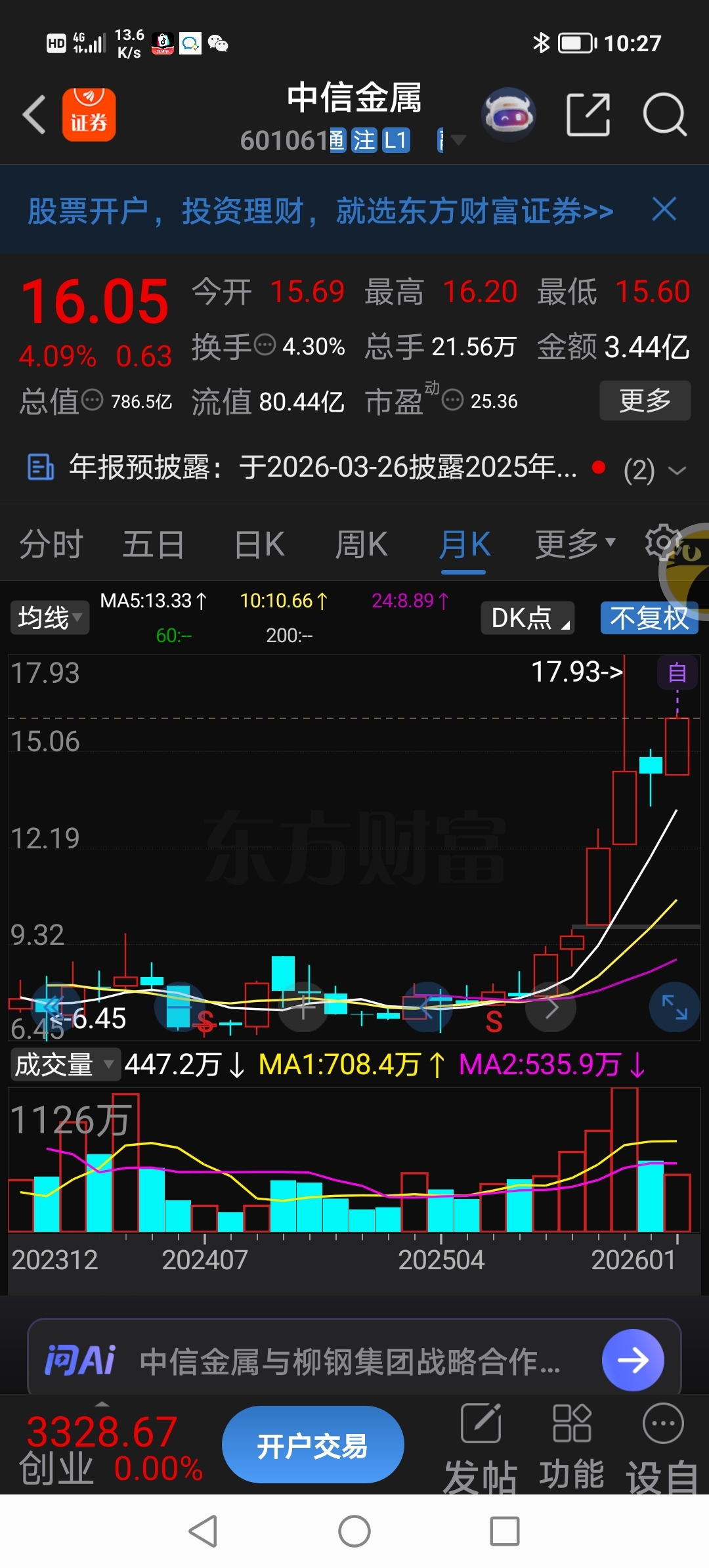 中信金属摆在这、注定这一波不与贵金属相提并论滴!就这么简单