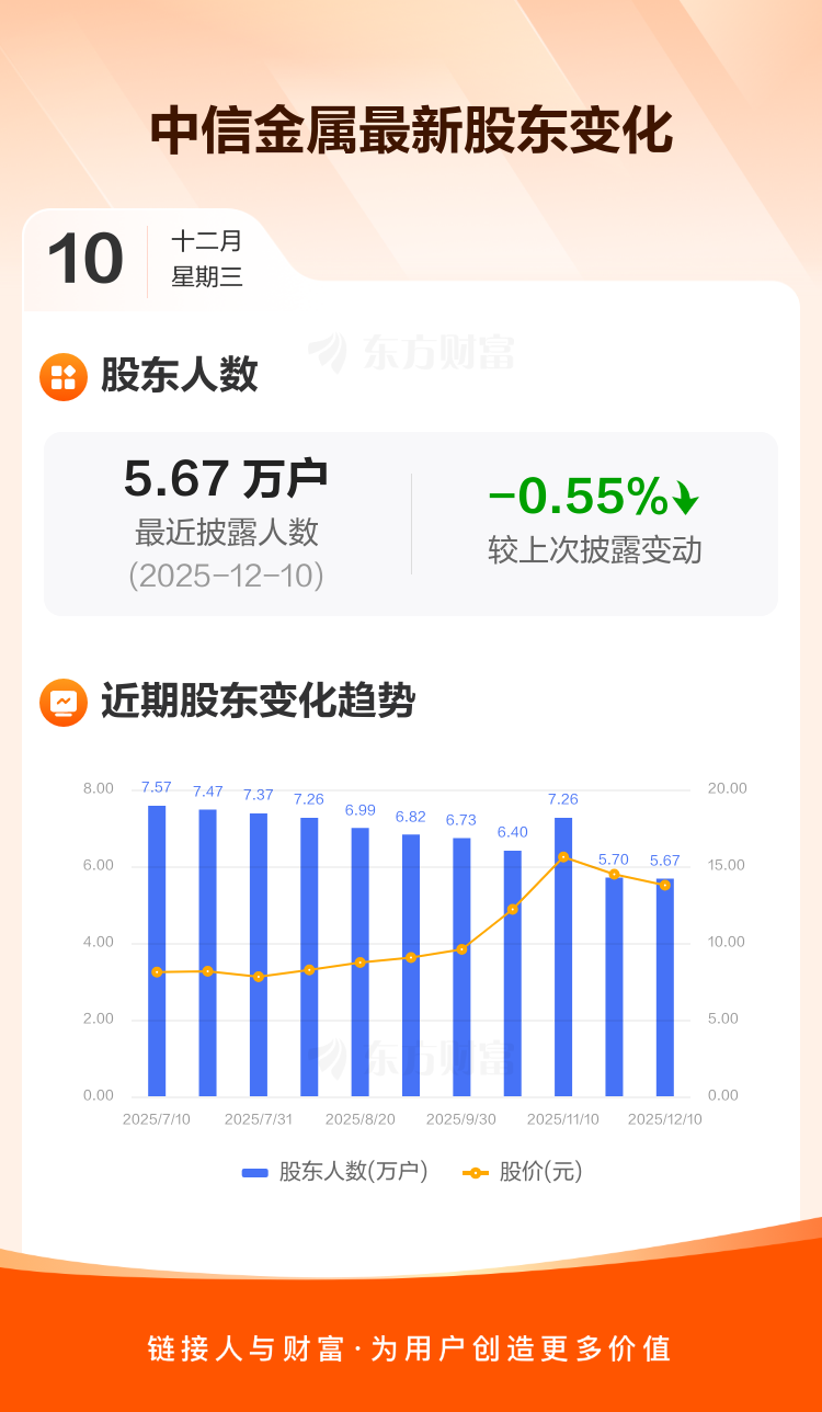 中信金属:截至12月10日最新股东户数5.67万户,较上期减少0.55%