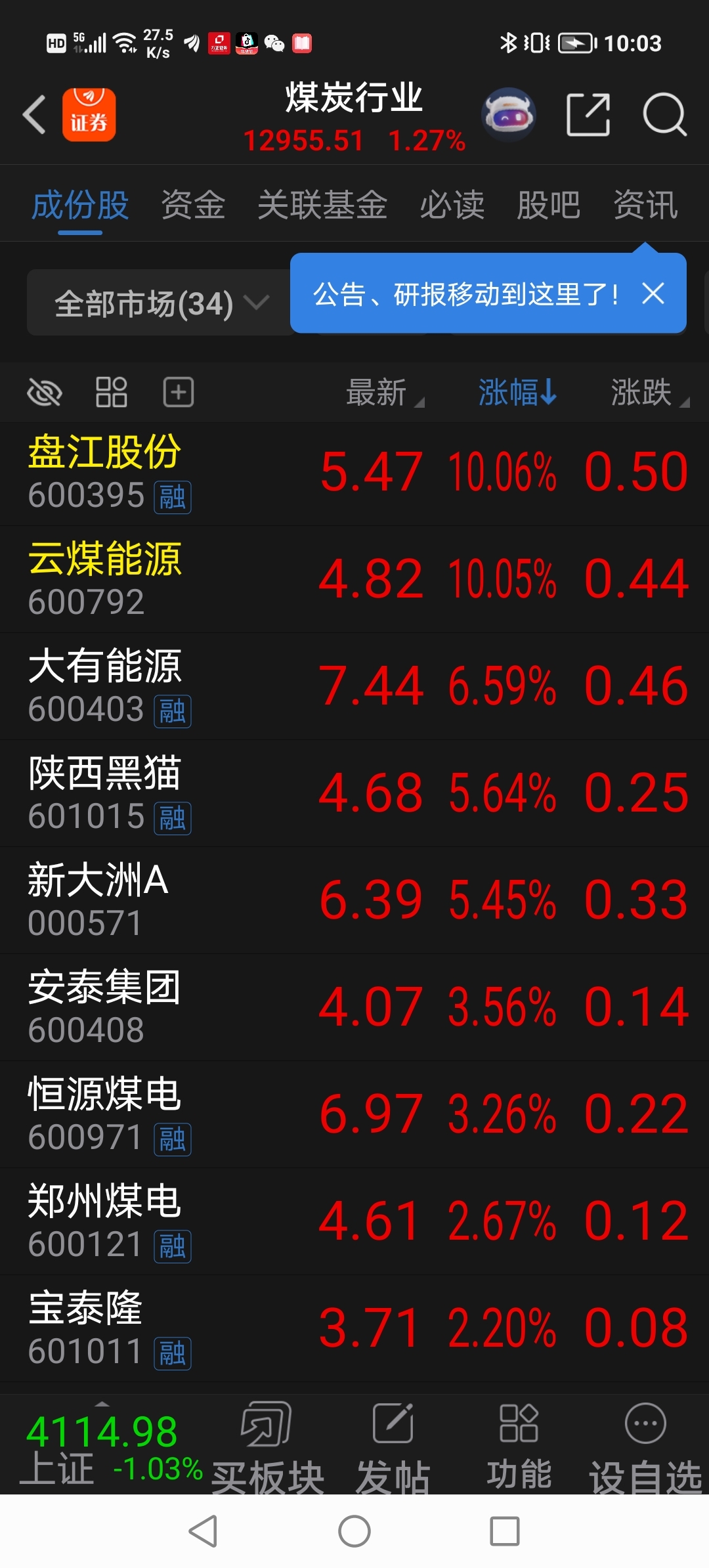 $XD中信金(SH601061)$ 煤炭白线离黄线有点远(乖离率大)是不是该回调(黄线转向初期)!也就是主升浪前期主力行为!懂的都懂!12月底贵金属我也是这么诠释过的!回过头来看是不是这么回事!这就是市场博弈过程的本质