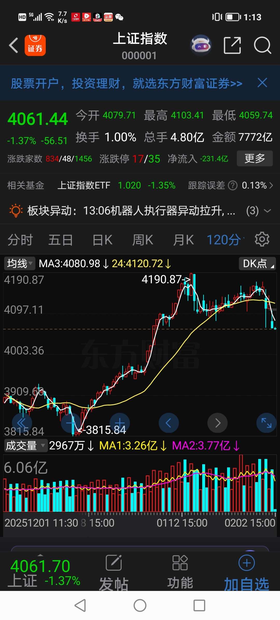 $中信金属(SH601061)$ 大盘白线下穿黄线、大趋变弱、选股机会暂时有点点难、仅此而已!