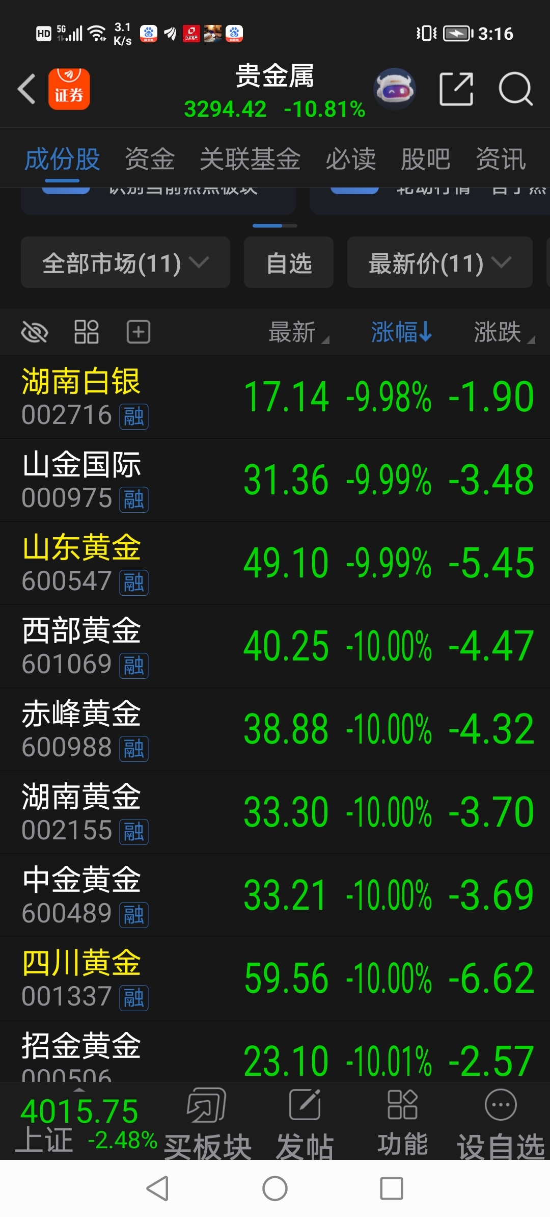 $中信金属(SH601061)$ 恭喜贺喜贵金属板块再次集体跌停!
