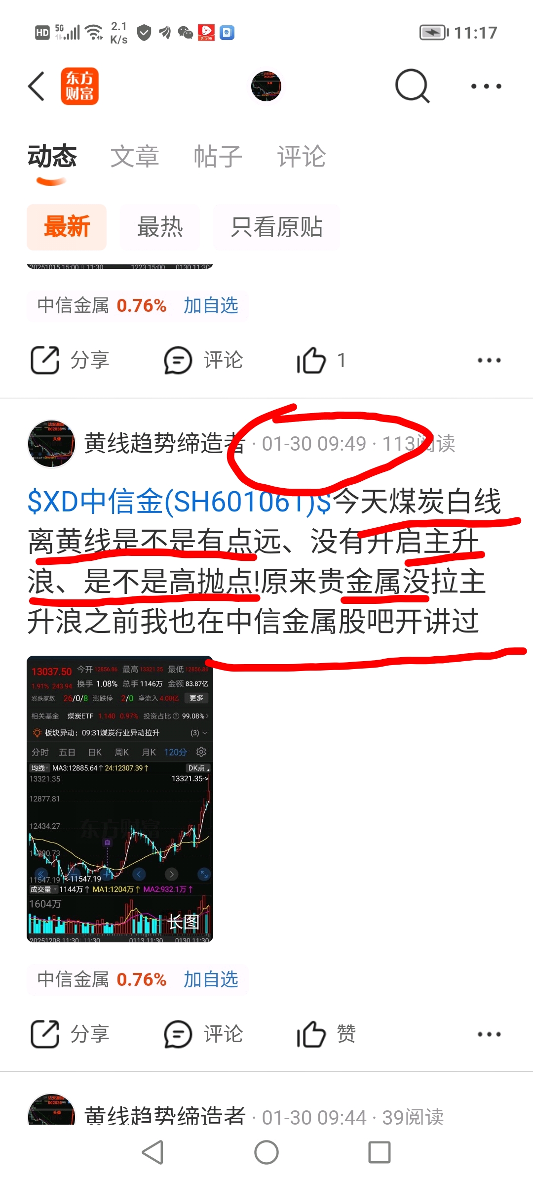 黄线老乡!今晚复盘你在中信金属股吧的煤炭板块评论、惊出我一身冷汗!我真的认为你在