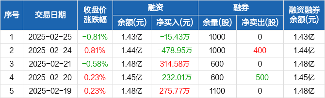 江盐集团:融资净偿还15.43万元,融资余额1.43亿元(02-25)