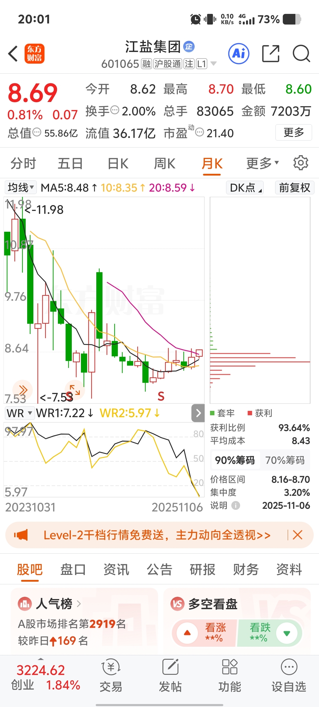 $江盐集团(SH601065)$ 磷化工开始了,什么时候炒盐,今日创12个月收盘新高