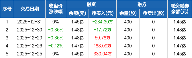 江盐集团:融资净偿还234.3万元,融资余额1.45亿元(12-31)