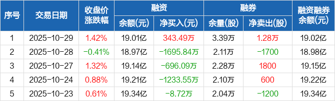 中信建投:融资净买入343.49万元,融资余额19.01亿元(10-29)