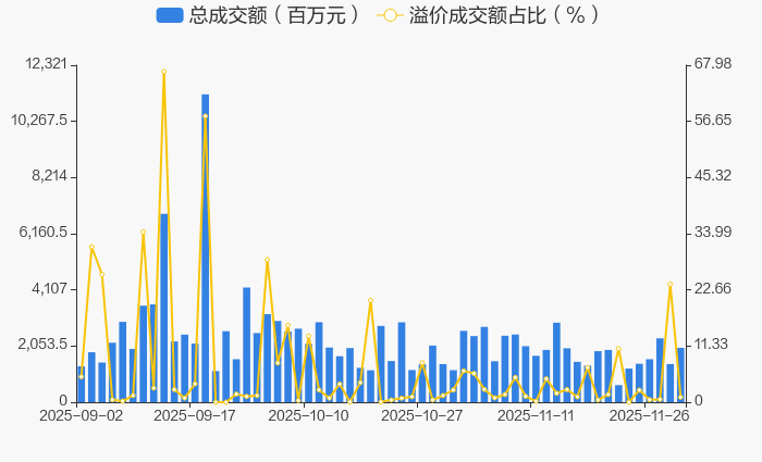 2025年12月1日沪深两市75只个股发生191笔大宗交易,共成交19.87亿元。其中,沪市32只个股共94笔大宗交易,总成交额为11.43亿元;深市39只个股共93笔大宗交易,总成交额为8.38亿元。沪指当日收盘报3914.01点,上涨0.65%,成交金额7856.58亿元。