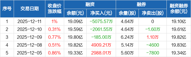 中信建投:连续3日融资净偿还累计7322.11万元(12-11)