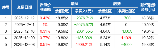 中信建投:连续4日融资净偿还累计9698.82万元(12-12)