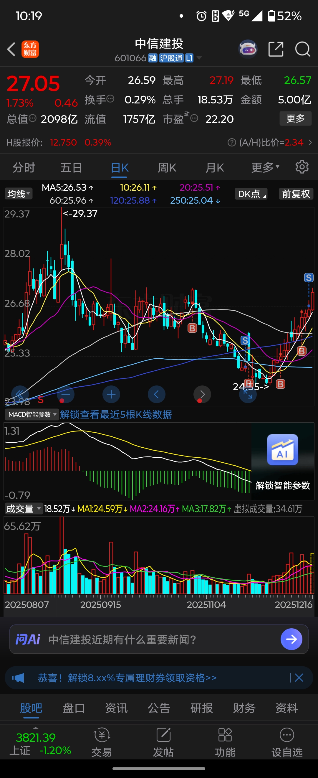 $中信建投(SH601066)$ 哎 拿不住啊 回本了就跑了