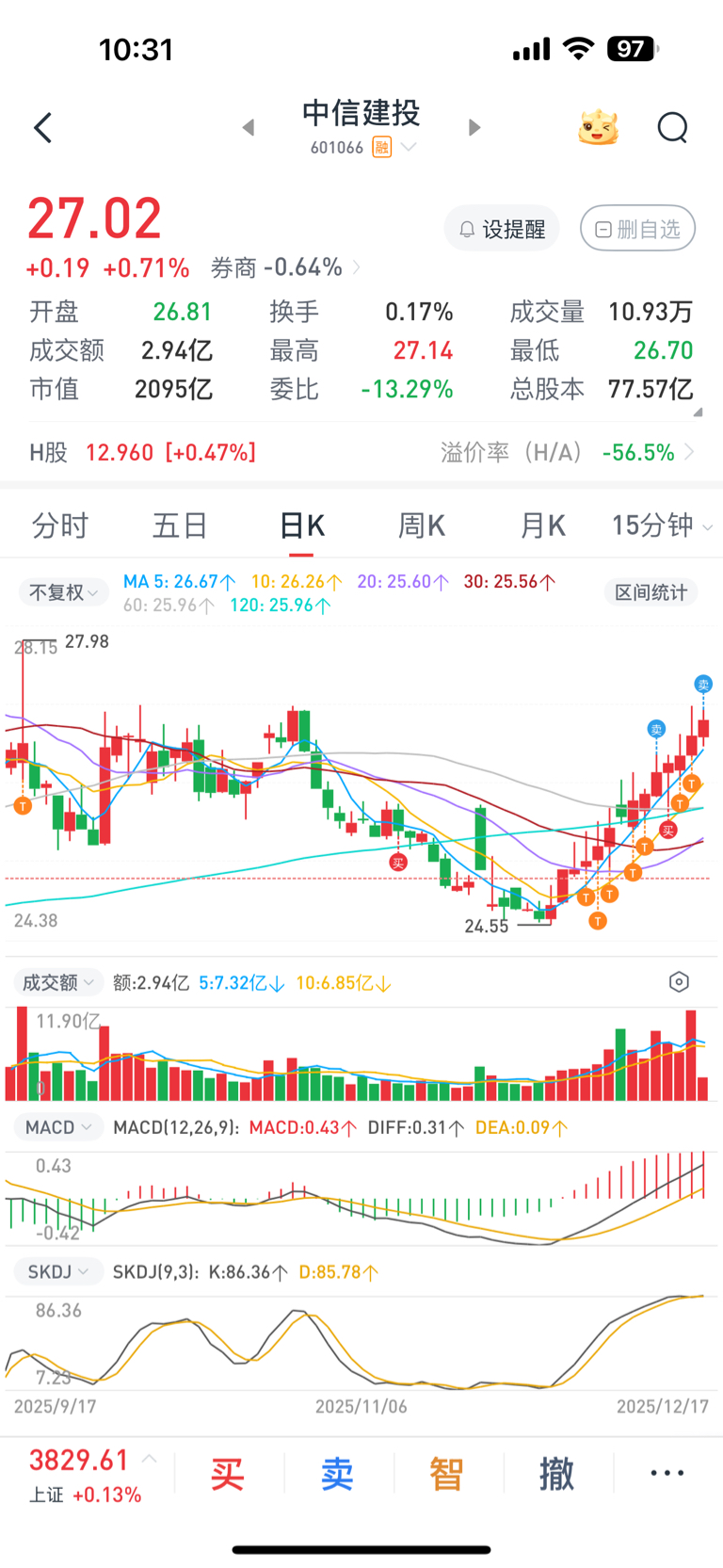 $中信建投(SH601066)$ 彻底卖完了,祝留下的朋友们发财、发大财!