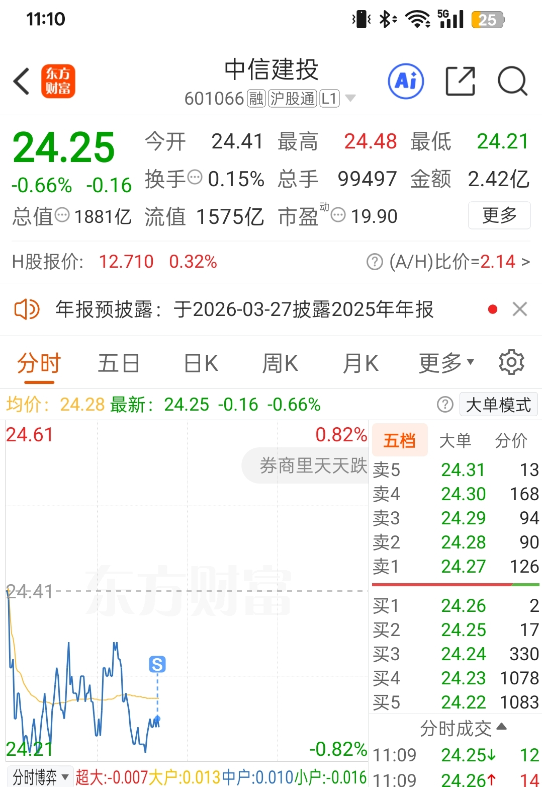 $中信建投(SH601066)$ 再见了大家,忍不住还是割了。实在是受不了了。经历过30块盈利,当时没跑,现在亏损没完没了。索性割了,去买券商ETF也不买他了。。就当是个利好吧。我走了主力应该会拉了