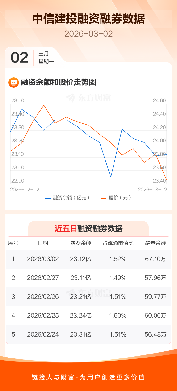 交易所最新数据显示,中信建投于2026年3月2日获融资买入3494.49万元,融资偿还3464.42万元,当日融资净买入30.07万元。目前,该股融资余额23.12亿,占流通市值比例为1.52%。