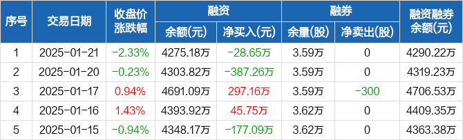 中铝国际:融资净偿还28.65万元,融资余额4275.18万元(01-21)