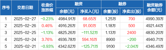 中铝国际:融资净买入68.65万元,融资余额4984.91万元(02-27)