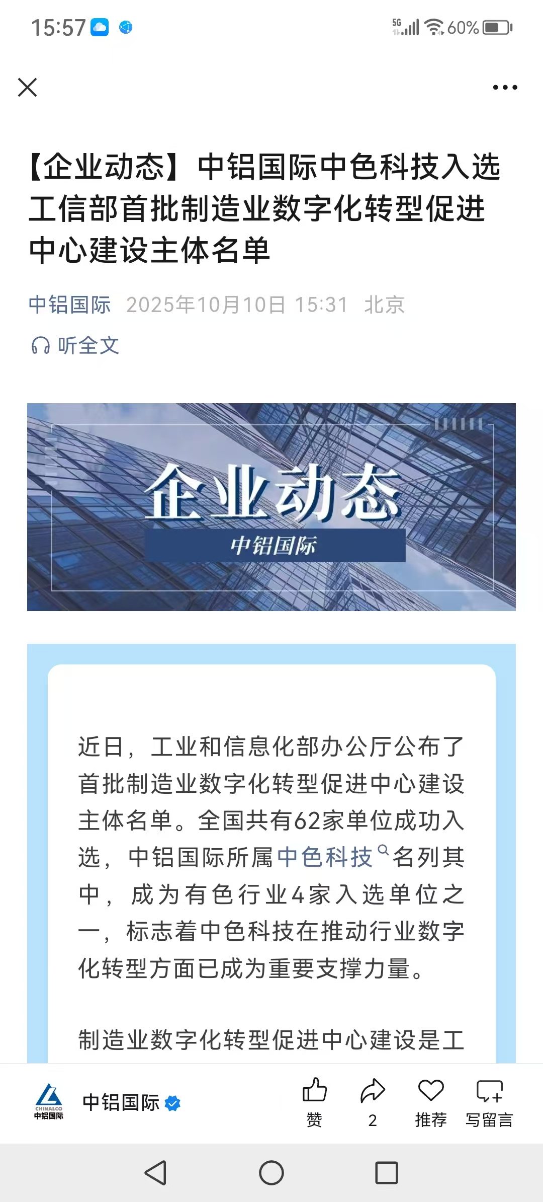 $中铝国际(SH601068)$ 首批数字化转型主体名单