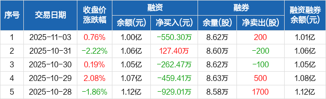 中铝国际:融资净偿还550.3万元,融资余额1亿元(11-03)