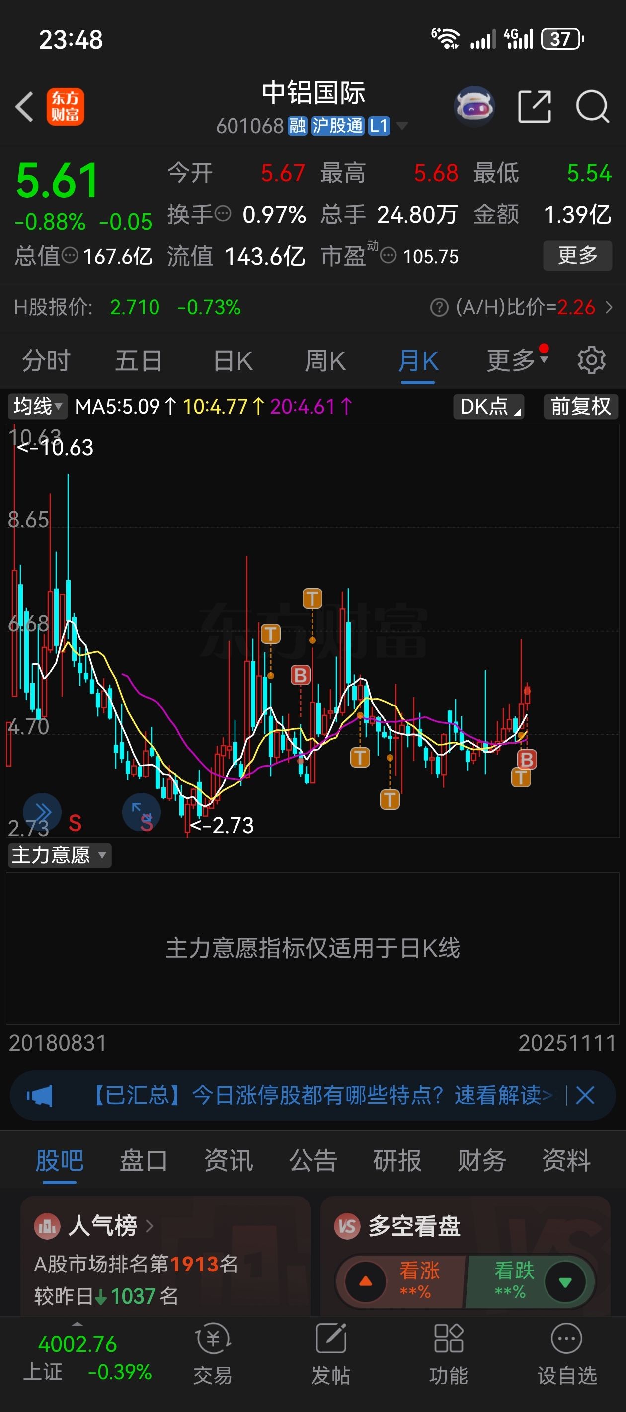 $中铝国际(SH601068)$ 关注了这股几年,给我的感觉就是没有大涨,自然也不会大跌,基本不受利好消息影响,基本也没利空,跌了买,涨20个点左右卖,稳定的很跟买了几次基本都小赚一点!