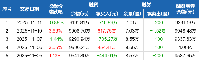 中铝国际:融资净偿还716.89万元,融资余额9191.81万元(11-11)
