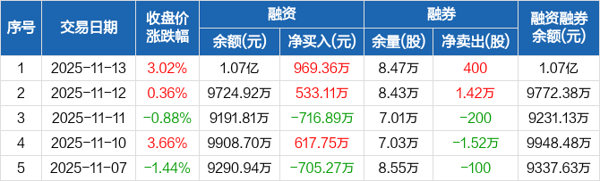 中铝国际:融资净买入969.36万元,融资余额1.07亿元(11-13)
