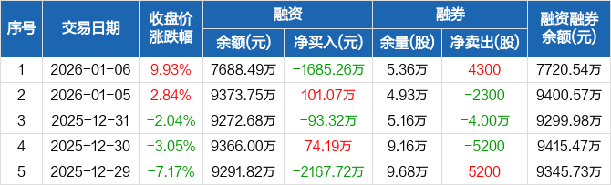 中铝国际:融资净偿还1685.26万元,融资余额7688.49万元(01-06)