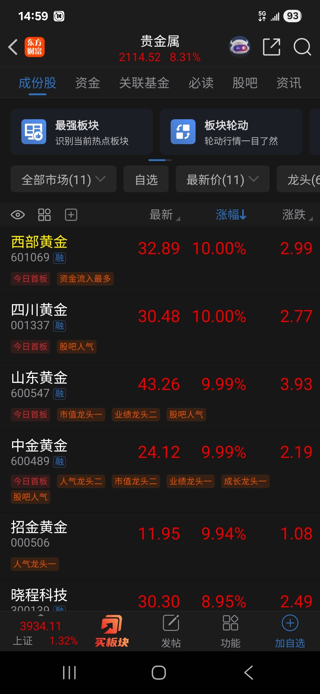 $西部黄金(SH601069)$ 为啥这货排板块第一,这么有排面?