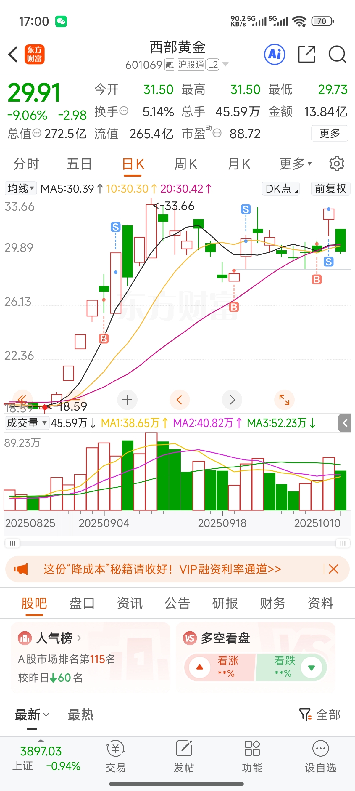 $西部黄金(SH601069)$ 谢谢龙头。运气真好