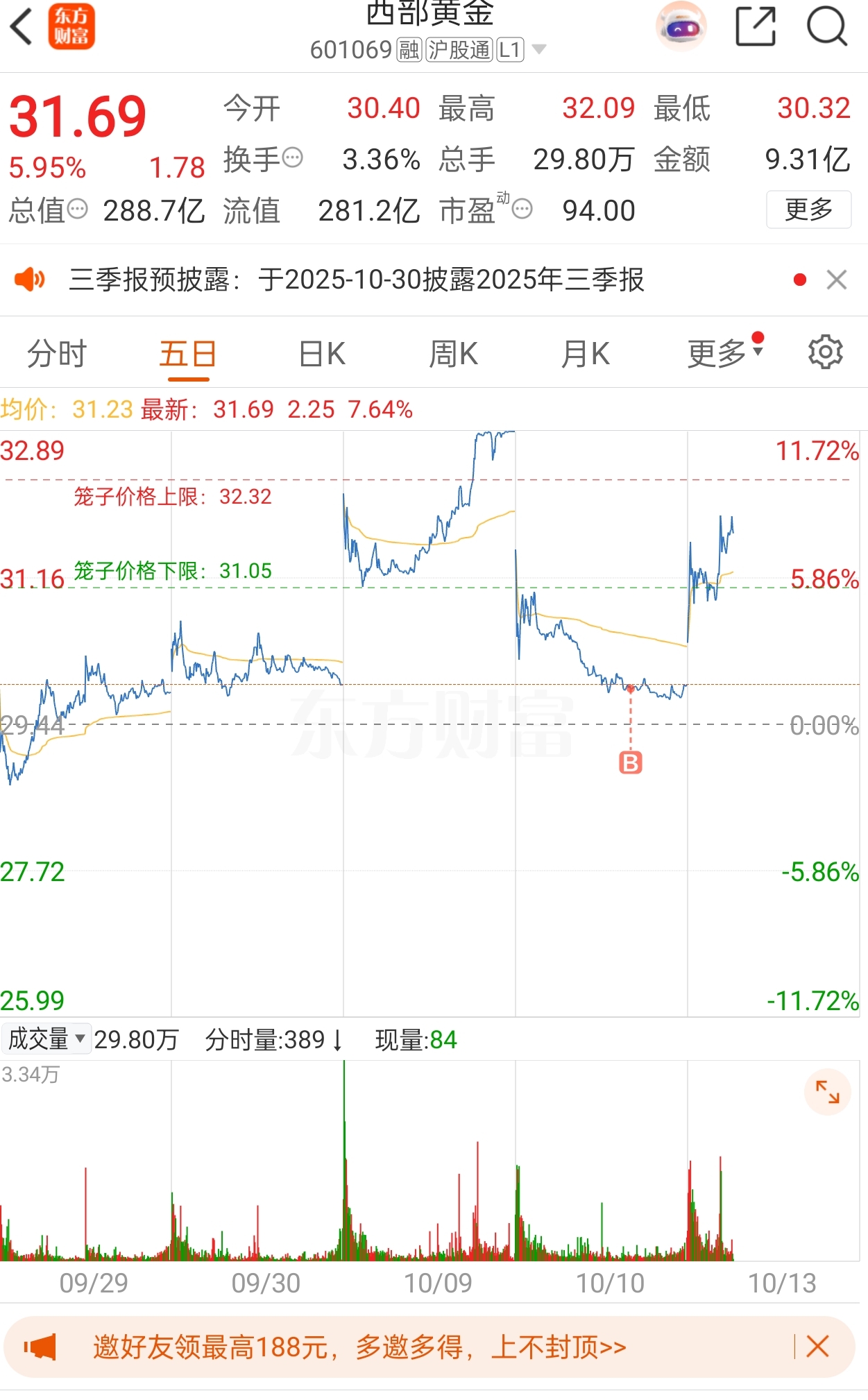 $西部黄金(SH601069)$ 上周五进的,不容易啊