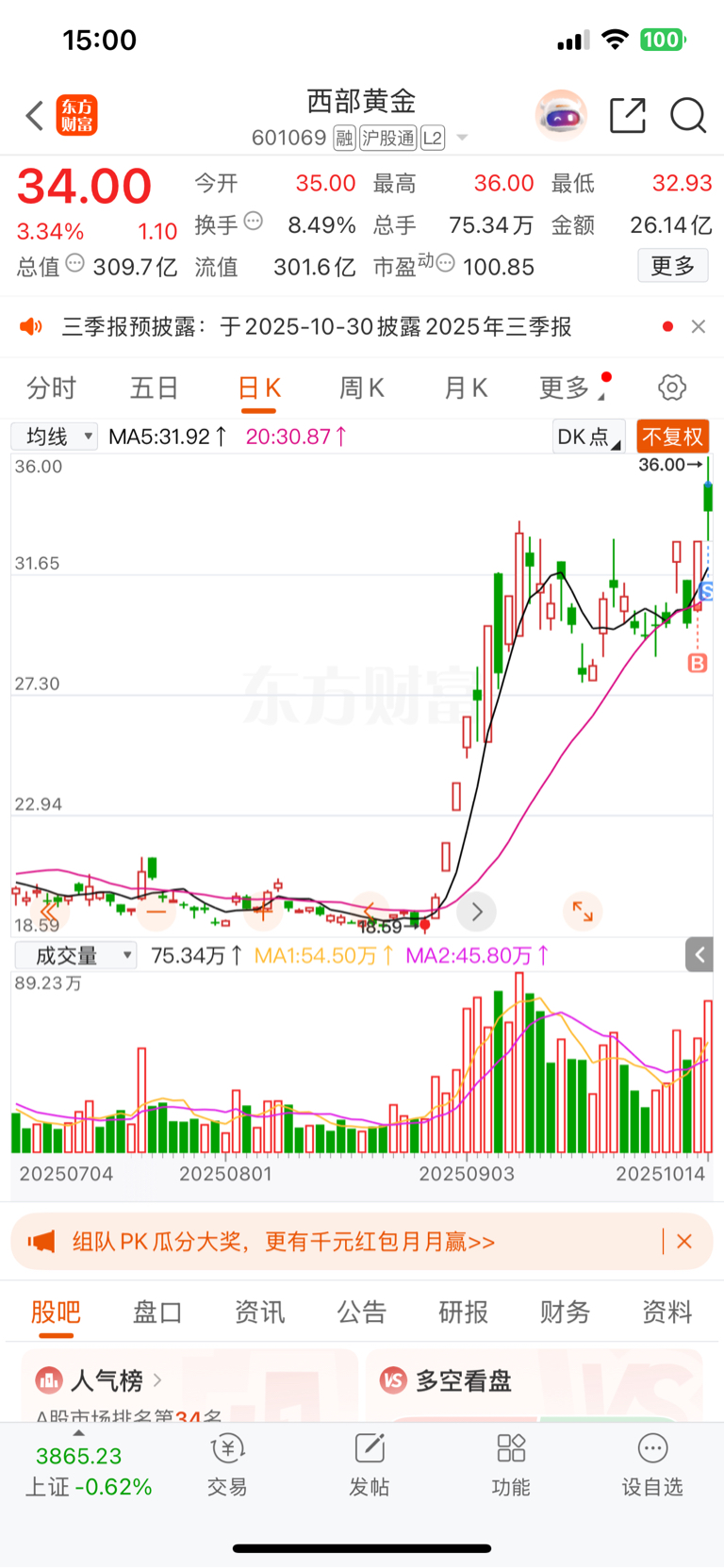 $西部黄金(SH601069)$ 走了,留下的发财…