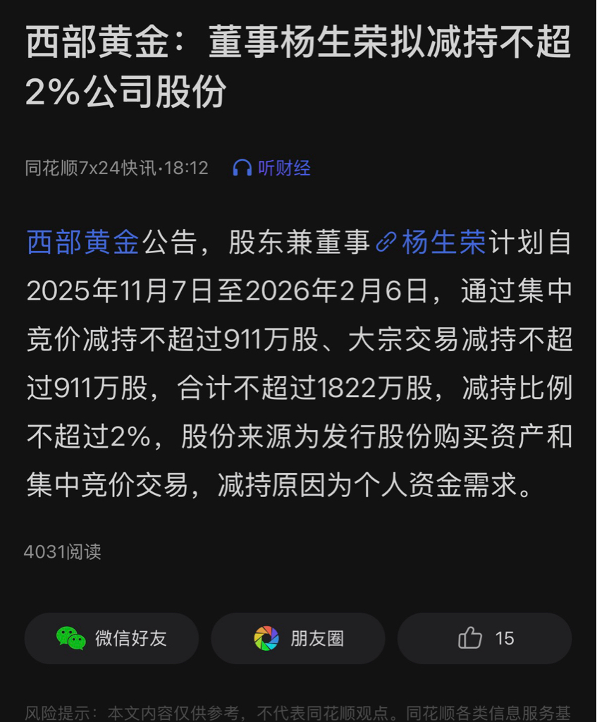 $西部黄金(SH601069)$ 还好我周一减了 80% 仓