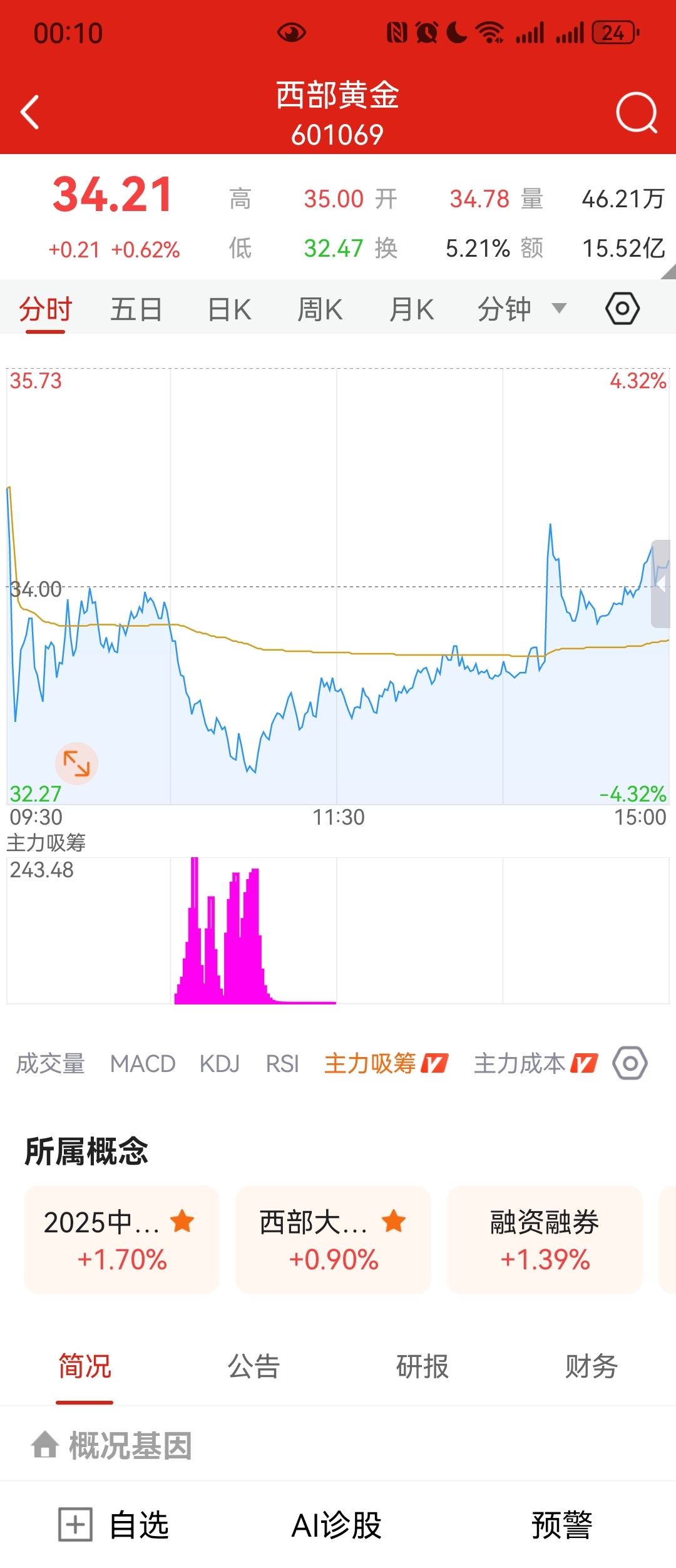 $西部黄金(SH601069)$ 主力在洗盘吸筹