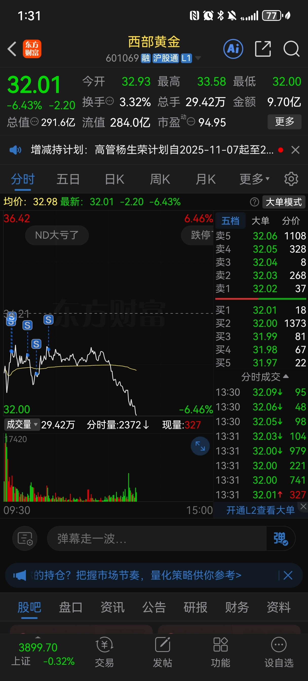 $西部黄金(SH601069)$ 看样子清仓是对的!减持股就是再大利好都没用!谢谢西部,我只是暂时的离开,再见