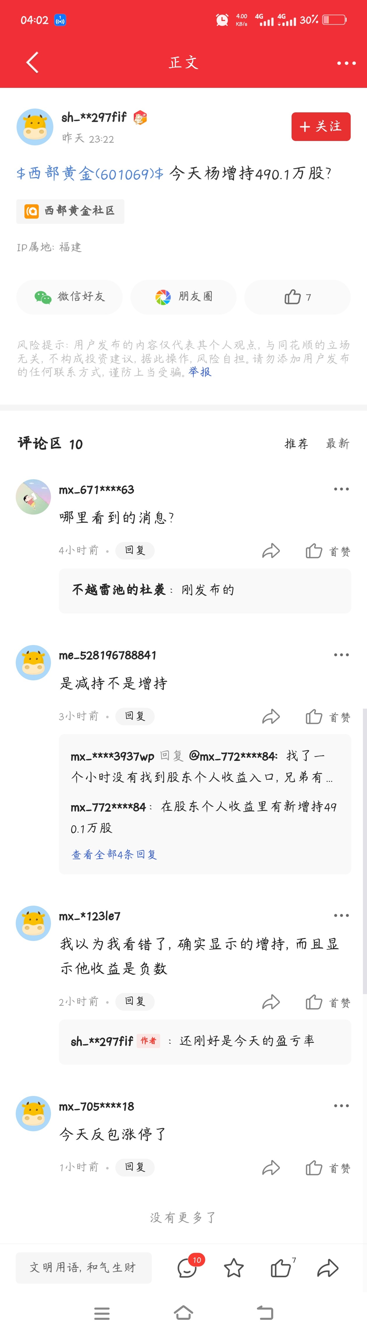 $西部黄金(SH601069)$ 隔壁同花顺看到的,这边能查到吗?拿减持消息砸盘吸筹,人急着吸筹抬升,今天大涨