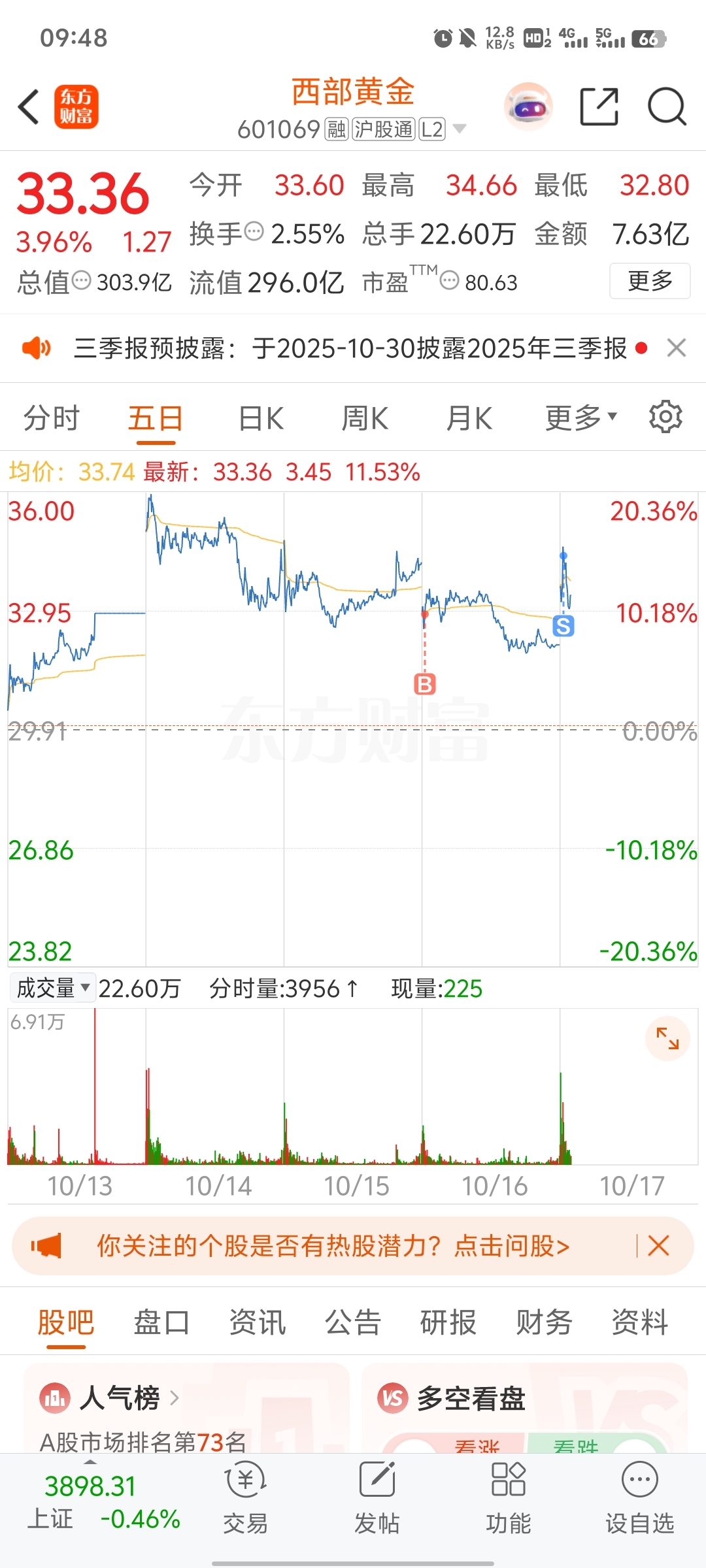 $西部黄金(SH601069)$ 小赚1000,美滋滋最后留个1手