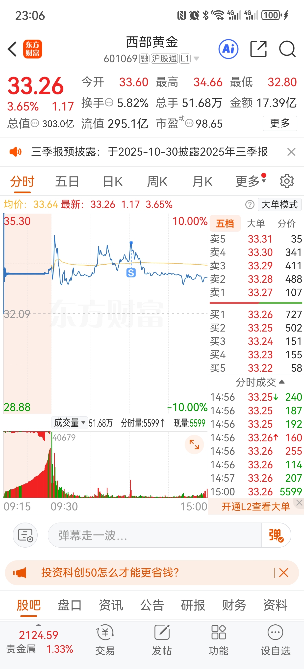 $西部黄金(SH601069)$ 都怪我 我不卖的话都不会下来