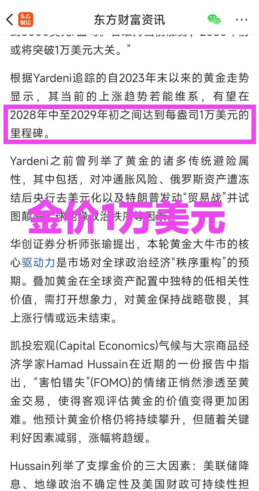 机构预测:金价将涨到1万美元,目前4267美元只是开始
