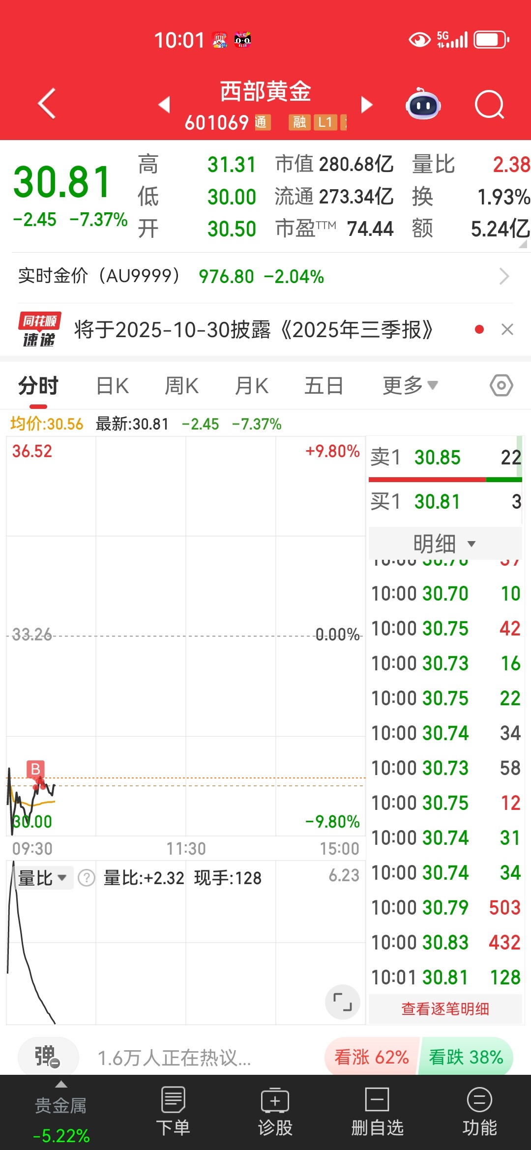$西部黄金(SH601069)$  $山金国际(SZ000975)$  $湖南白银(SZ002716)$  感谢西部黄金主力,感谢湖南白银主力,预祝山金国际赴港上市成功!又梭哈山金国际了!
