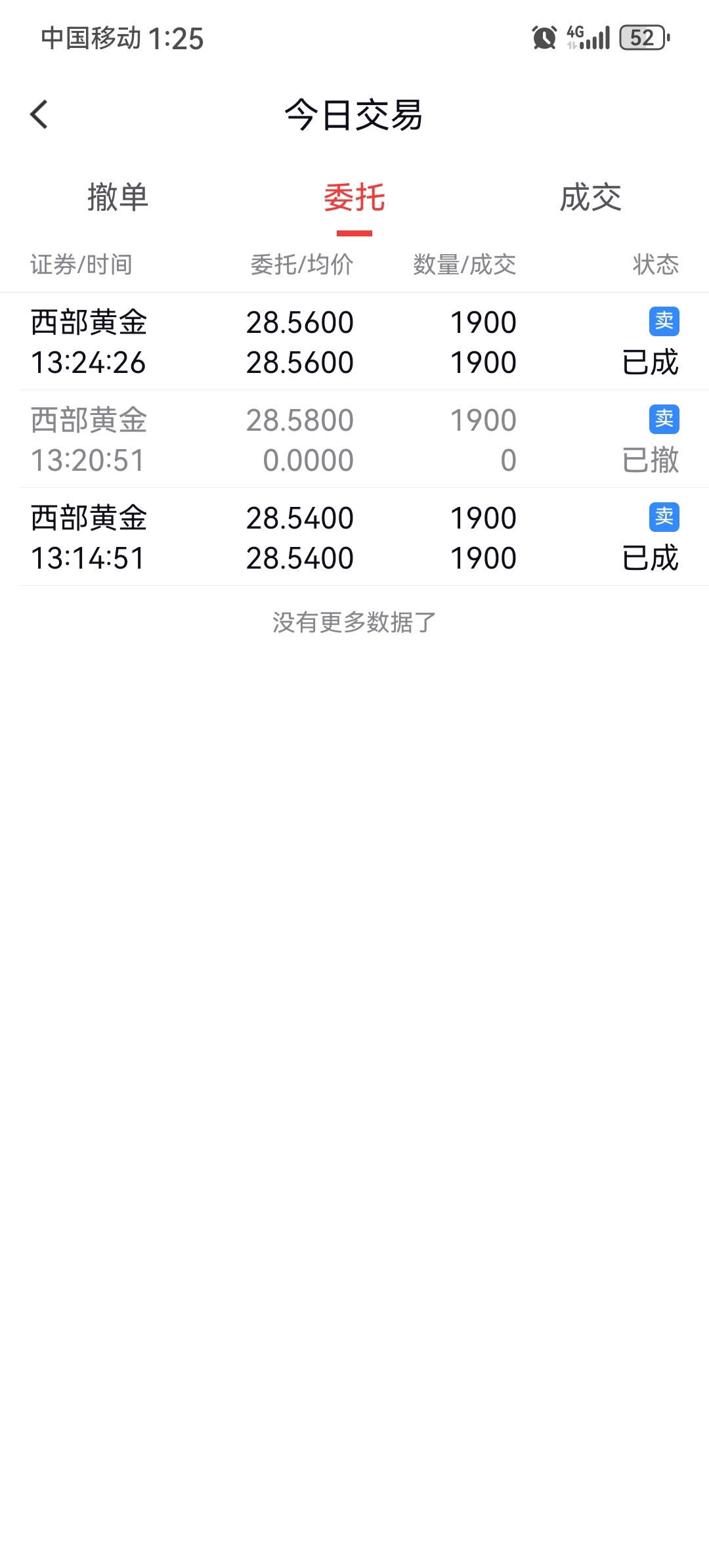 卖了走人,不敢拿了,换了中毅达,希望收盘给我赚点回来还赚一点点