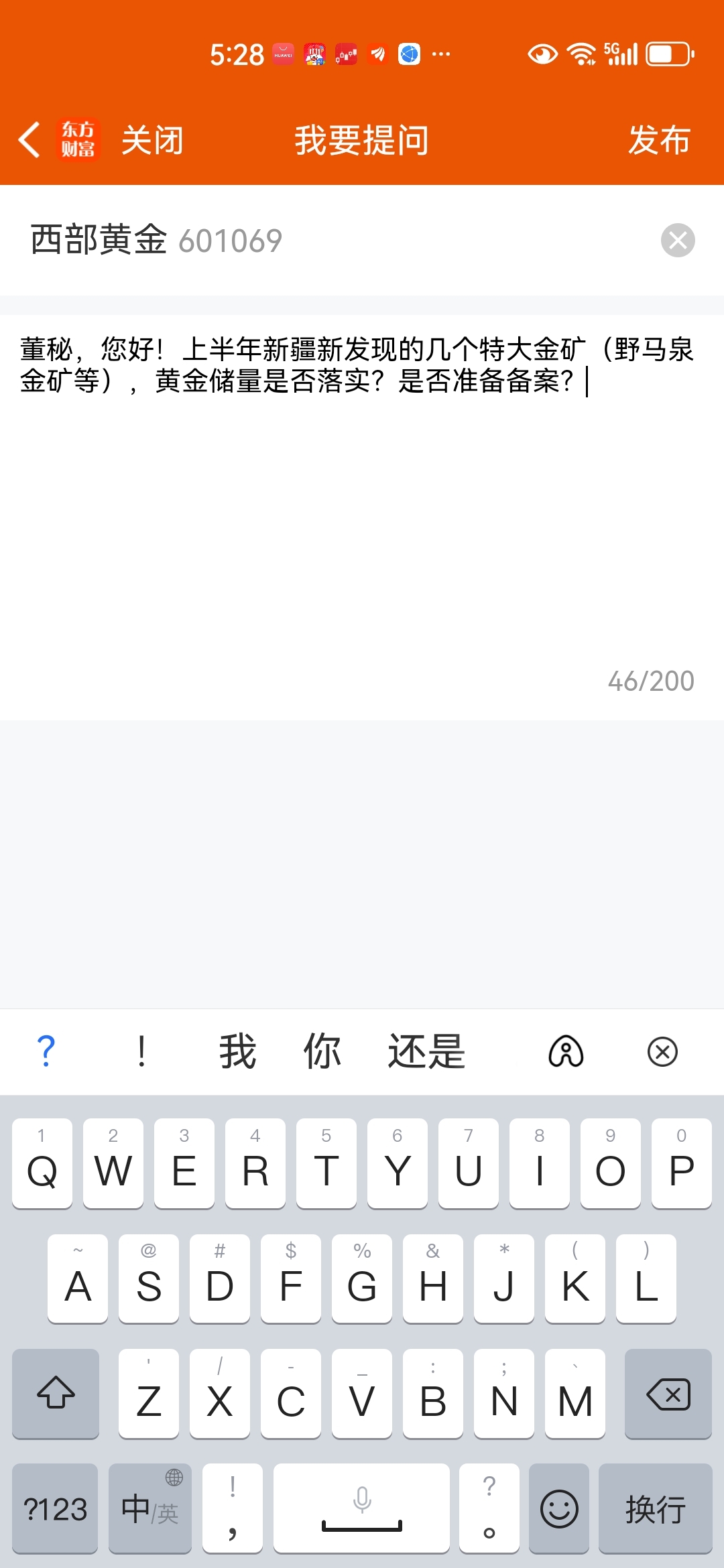 问了董秘哈密金矿复产建设的问题,问了董秘几个特大金矿具体储量和备案的问题。亲们还