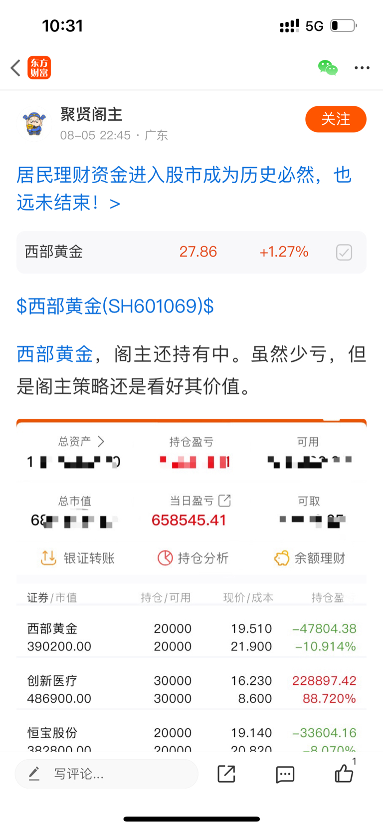 阁主来了,分享一下黄金板块。其实投资没有那么难,选择一个好的标的,然后冲进去,不