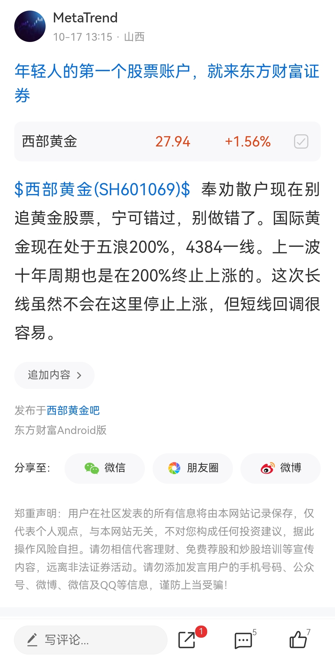 温馨提示: 1.根据《证券法》规定,禁止编造、传播虚假信息或者误导性信息,扰乱证券市场;2.用户在本社区发表的所有资料、言论等仅代表个人观点,与本网站立场无关,不对您构成任何投资建议。用户应基于自己的独立判断,自行决定证券投资并承担相应风险。《东方财富社区管理规定》