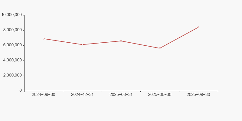 截至2025年9月30日,公司最新总股本为9.11亿股,其中流通股本为8.87亿股。户均持有流通股数量由上期的1.4万股下降至1.12万股,户均流通市值33.39万元。