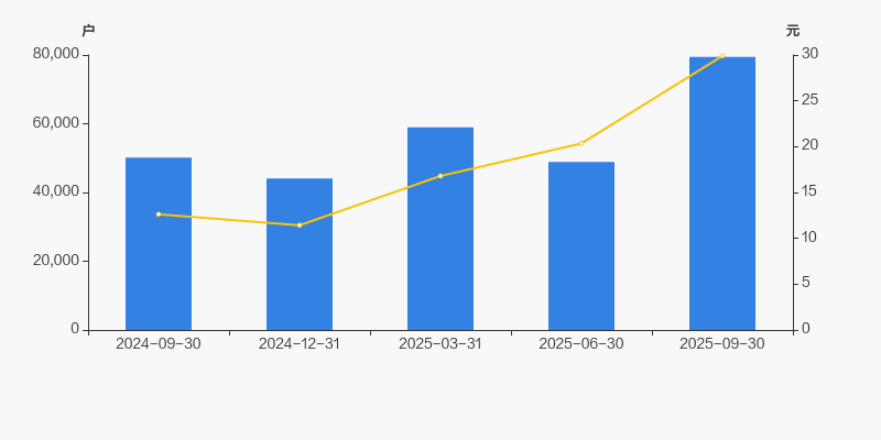 2024年9月30日至今,公司股东户数显著大幅增长,区间涨幅达58.43%。2024年9月30日至2025年9月30日区间股价上涨136.99%。