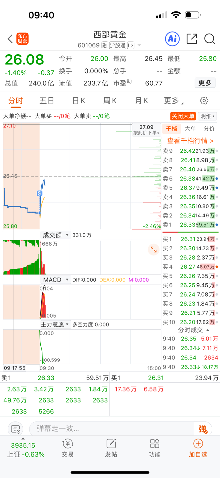 $西部黄金(SH601069)$ 今天这是咋了,一卖就开始拉,跟我有仇吗?这是割散户的牛市