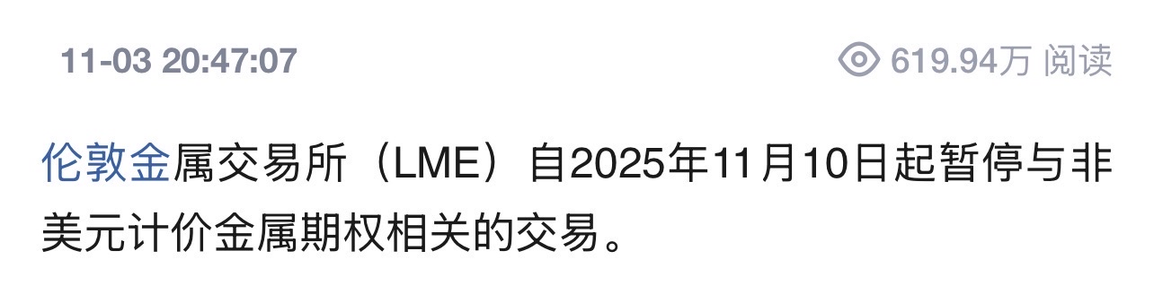 暂停非美元计价交易金属期权,其它货币不能交易了,想在全球最大的期货市场混,只能用