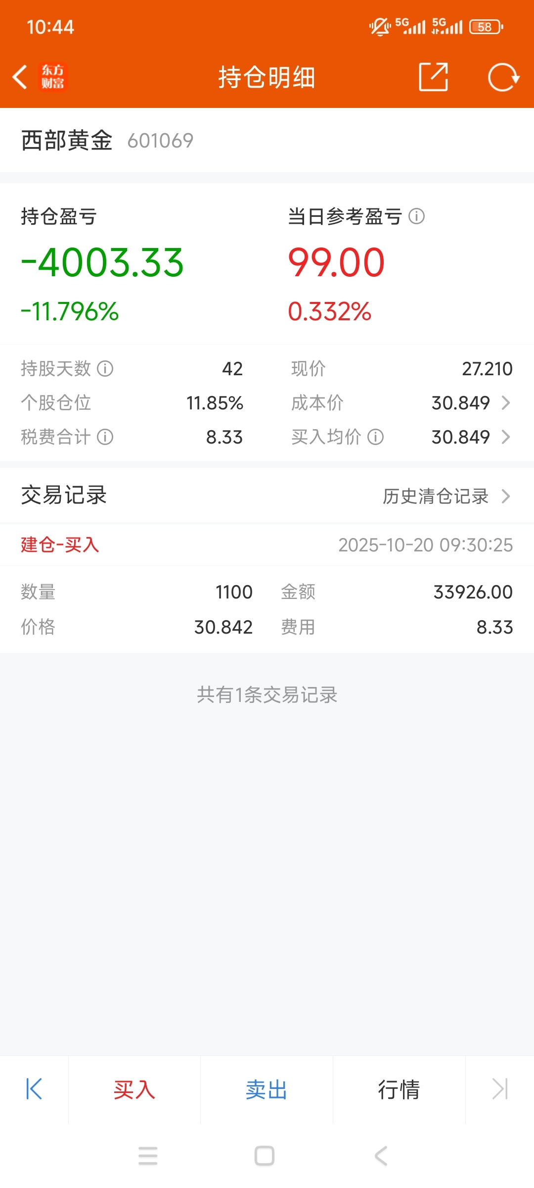 $西部黄金(SH601069)$ 42天了,你就这样回报我?!!!